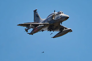 Para finalizar la visita las autoridades se trasladaron en helicópteros Bell 412 y Lama hacia el “Campo de Tiro Vicecomodoro Correa”. Allí pudieron observar una demostración de tiro de los Sistemas de Armas EMB-312 Tucano, A-4AR y Pampa III que realizaron lanzamientos de bombas y tiro con cañones.